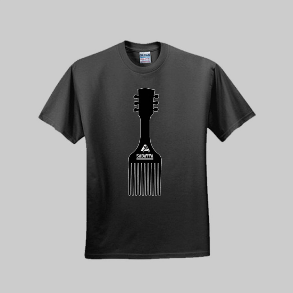 Unisex T-Shirt featuring Sabatta's iconic 'Hair Guitar' Comb logo. Available in S.M,L,XL,XXL